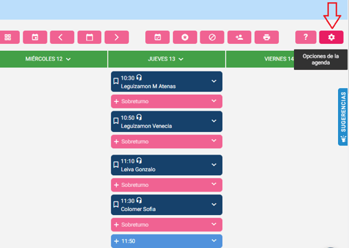1. Desde la agenda, hacé clic en “Opciones de la agenda”.