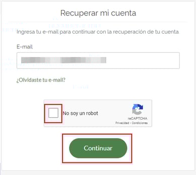 4. Volvé a completar tu email, marcá la opción “No soy un robot” y continuá.