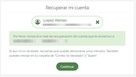 5. Aparecerá un mensaje confirmando que se generó el correo de recuperación. Si todo está correcto, ya podés cerrar esa ventana o pestaña.