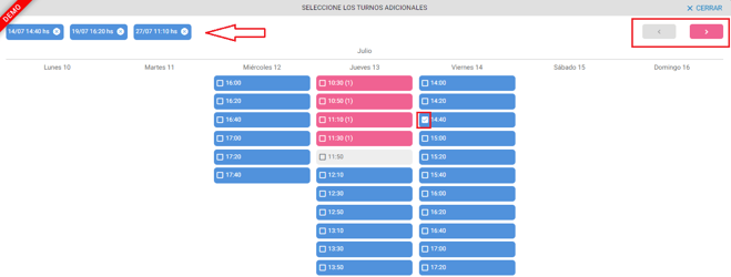 3. Una vez seleccionados los turnos adicionales, hacé clic en “Continuar”