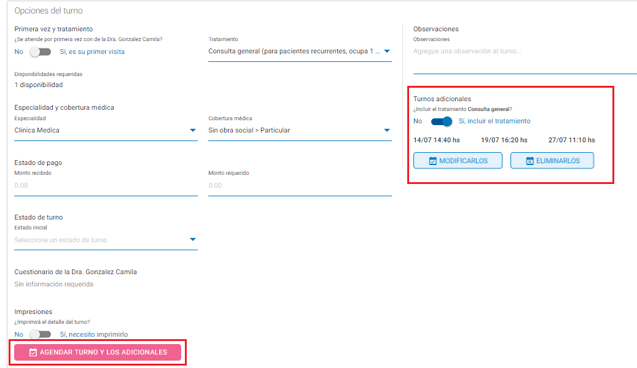 Podés asignarle varios turnos seguidos a un paciente (por ejemplo, para un tratamiento o seguimiento).