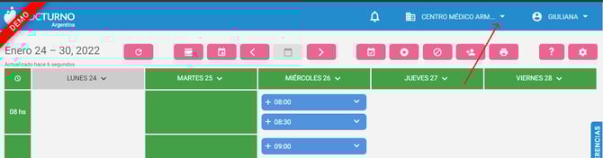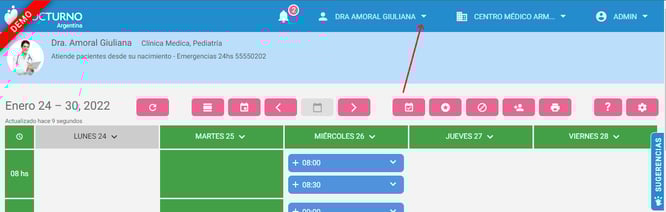 - Como secretaria: ingresá a la agenda del médico y abrí el menú (donde aparece el nombre del profesional).