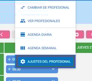 1. Seleccioná “Ajustes del profesional” (último ítem del menú).