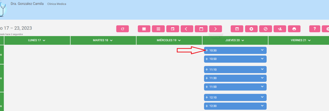 1. Desde la agenda del médico, posicionate en el día y hora del turno, y hacé clic sobre el ícono “+”