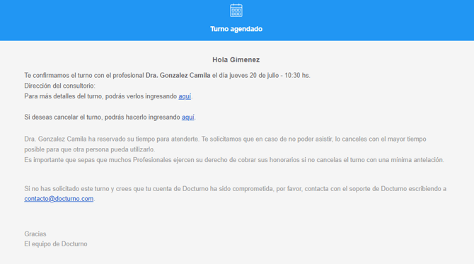 👉 Si el turno es virtual, el email aclarará la modalidad y no incluirá la dirección del consultorio.
