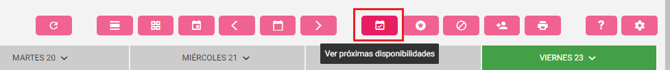 1. Desde la agenda, hacé clic en el 8.º botón 👉 “Ver próximas disponibilidades”.