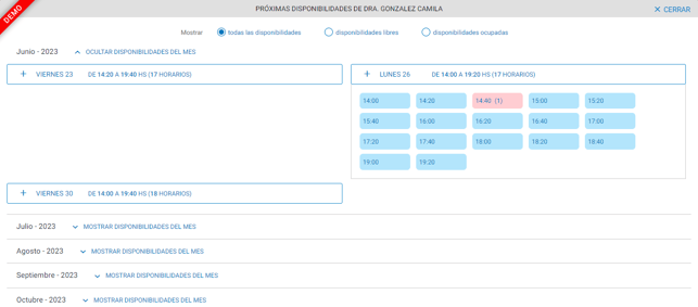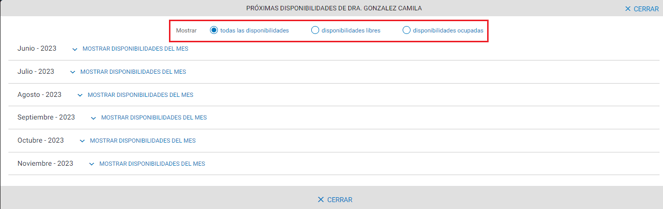 2.Se abrirá un cuadro donde vas a poder visualizar todas las disponibilidades.
