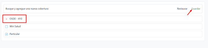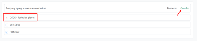 A) Si el profesional atiende determinados planes de una cobertura, entonces debés seleccionar únicamente esos planes que atiende. Por último hacer clic en Guardar.