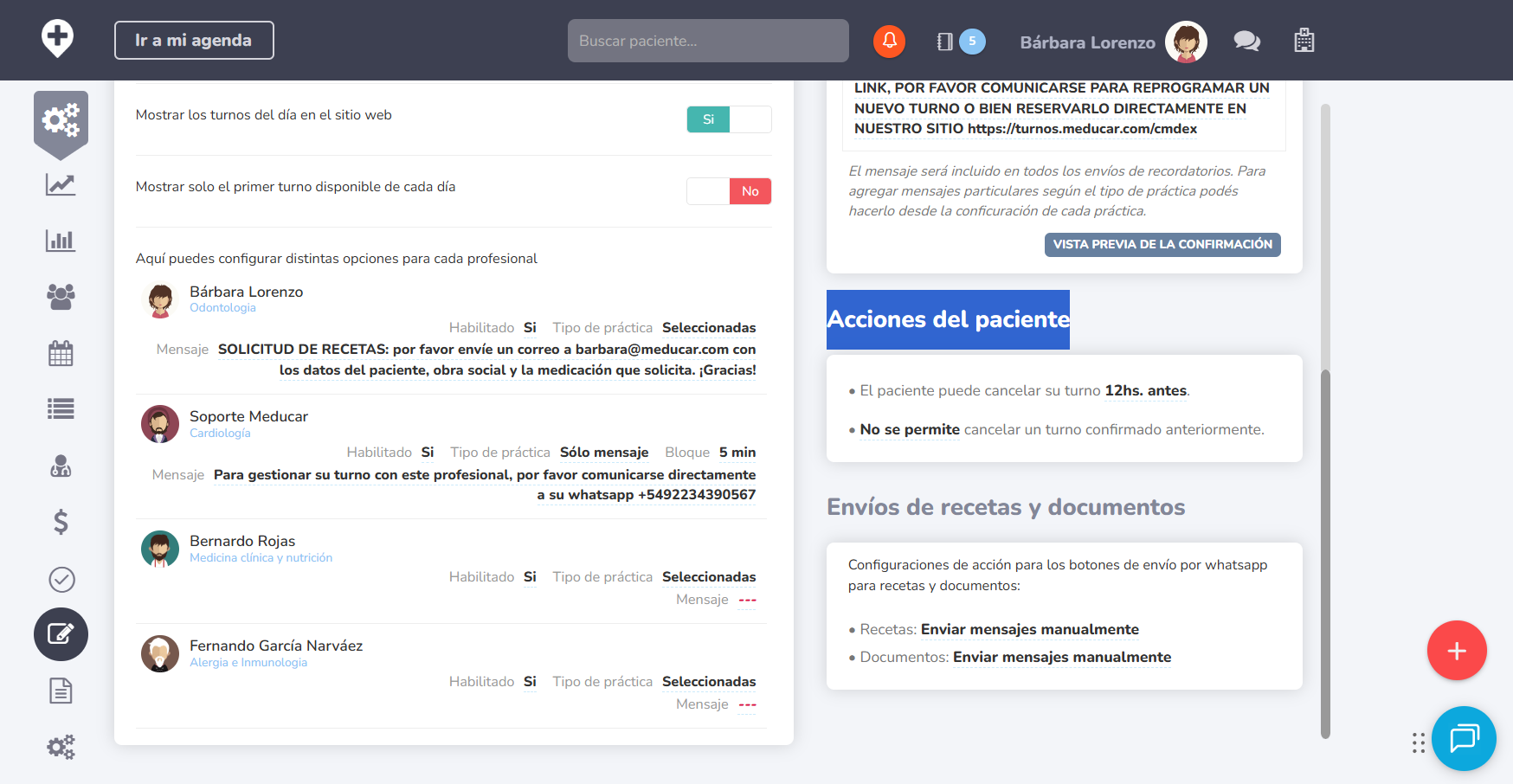✅ ENVIAR/NO ENVIAR el mensaje de NUEVO TURNO AGENDADO (el primero que envía Meducar) y pueden elegir el medio (Email, whatsapp o ambos);
