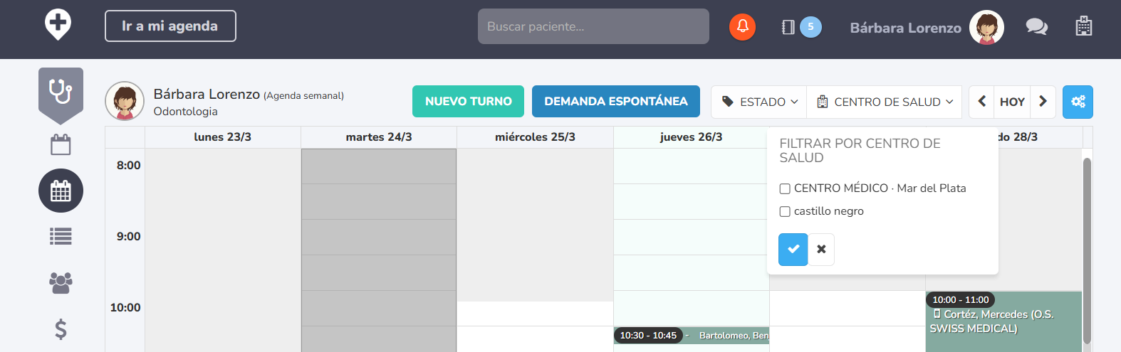 En la vista de agenda también encontrarán un FILTRO POR CENTRO DE SALUD si necesitan visualizar los turnos de manera separada. De lo contrario siempre se mostrarán todos los turnos.