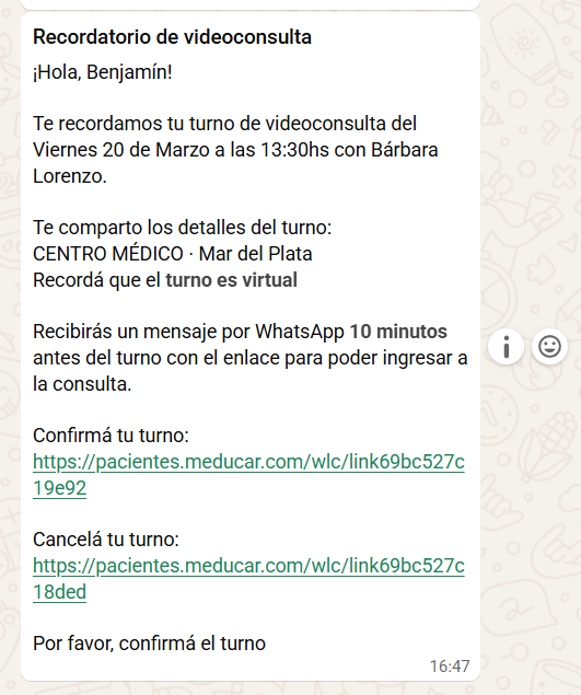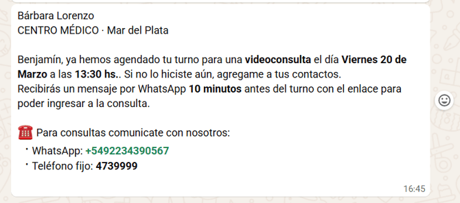 3️⃣EL MENSAJE con el LINK para que el paciente se conecte a la videoconsulta