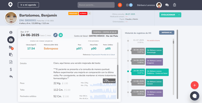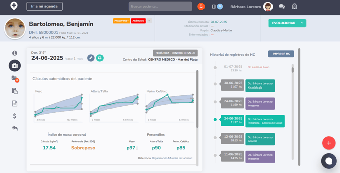 La PRÁCTICA DE SISTEMA tiene el nombre de "Pediátrica - control de salud"