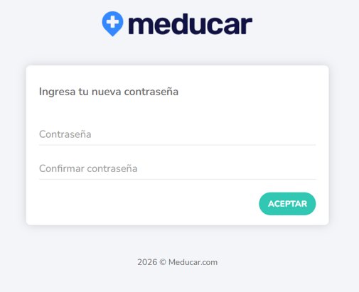 Desde https://panel.meducar.com/ingresar con la opción de "Olvidé mi contraseña" vas a poder iniciar la gestión por una nueva.
